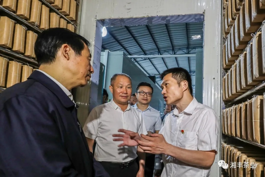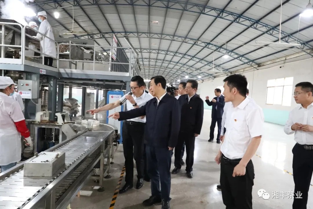 在參觀了湘豐桑植白茶公司白茶壓制、檢測及烘干等生產(chǎn)線后,省長等一行來到一樓湘豐茶業(yè)集團文化和產(chǎn)品展覽室,品鑒桑植白茶、觀看湘豐茶業(yè)集團介紹短片、交流茶業(yè)產(chǎn)業(yè)發(fā)展的相關問題。省長對湘豐茶業(yè)集團致力于桑植白茶產(chǎn)業(yè)發(fā)展、帶動一方農(nóng)戶脫貧致富的經(jīng)營理念和實踐表示贊賞,并勉勵公司做優(yōu)做強,完善同村集體、農(nóng)戶的利益聯(lián)結(jié)機制,實現(xiàn)多方參與、多方共贏。湯宇董事長表示:感謝省長的肯定和鼓勵!湘豐茶業(yè)集團根植于農(nóng)業(yè),興盛于農(nóng)業(yè),服務于三農(nóng),一定會在實現(xiàn)自身強大的同時,踐行社會責任!